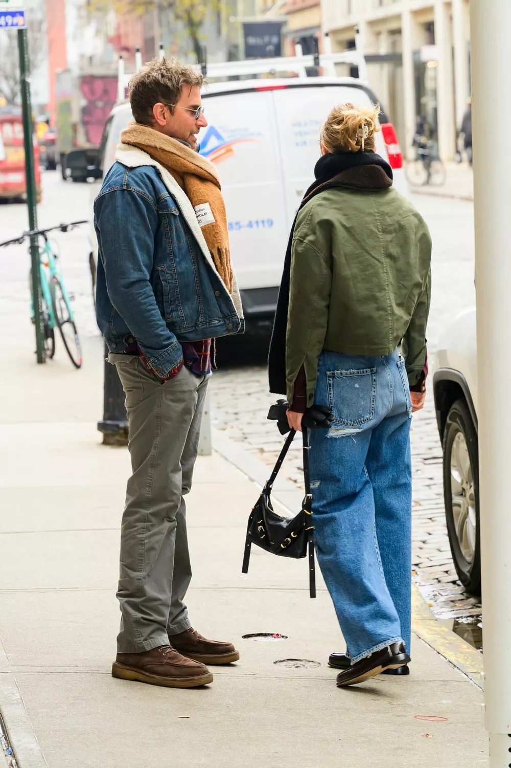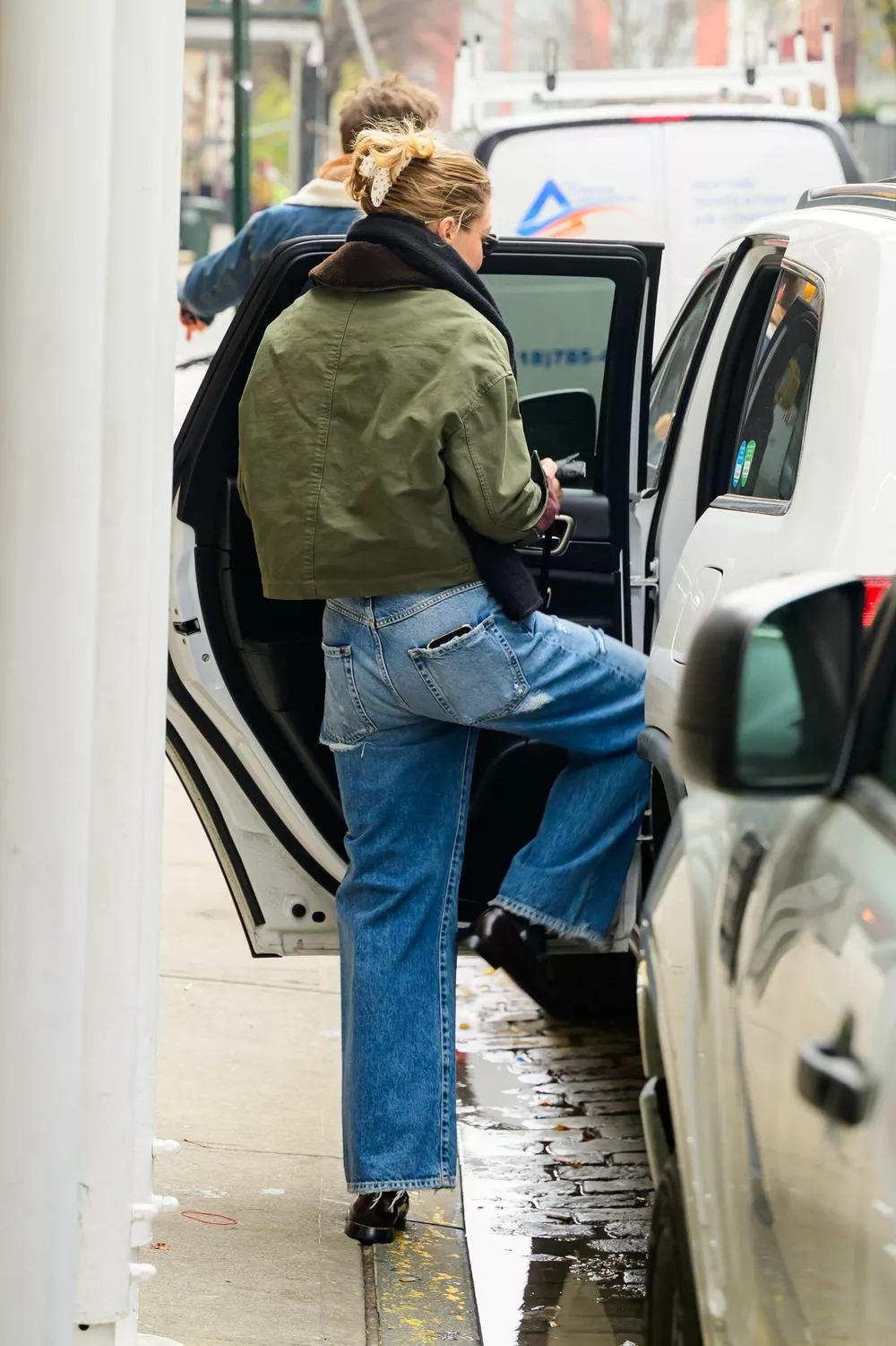 Hadid, 30, matched the laid-back mood with her own off-duty uniform. The supermodel opted for a cropped workwear-style jacket in muted khaki, loose distressed jeans, and brown leather loafers. She accessorized with gloves, a compact handbag, and a soft coffee-colored scarf, proving once again that her street style needs no runway to make an impact.