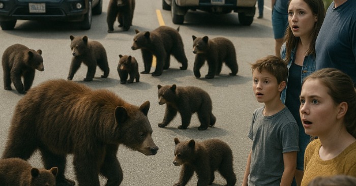 Drivers thought it was just another traffic jam. Engines idled, horns blared, and people leaned out of their windows trying to see what was holding everyone up. But then came the whispers: “It’s bears… a whole family of them.”