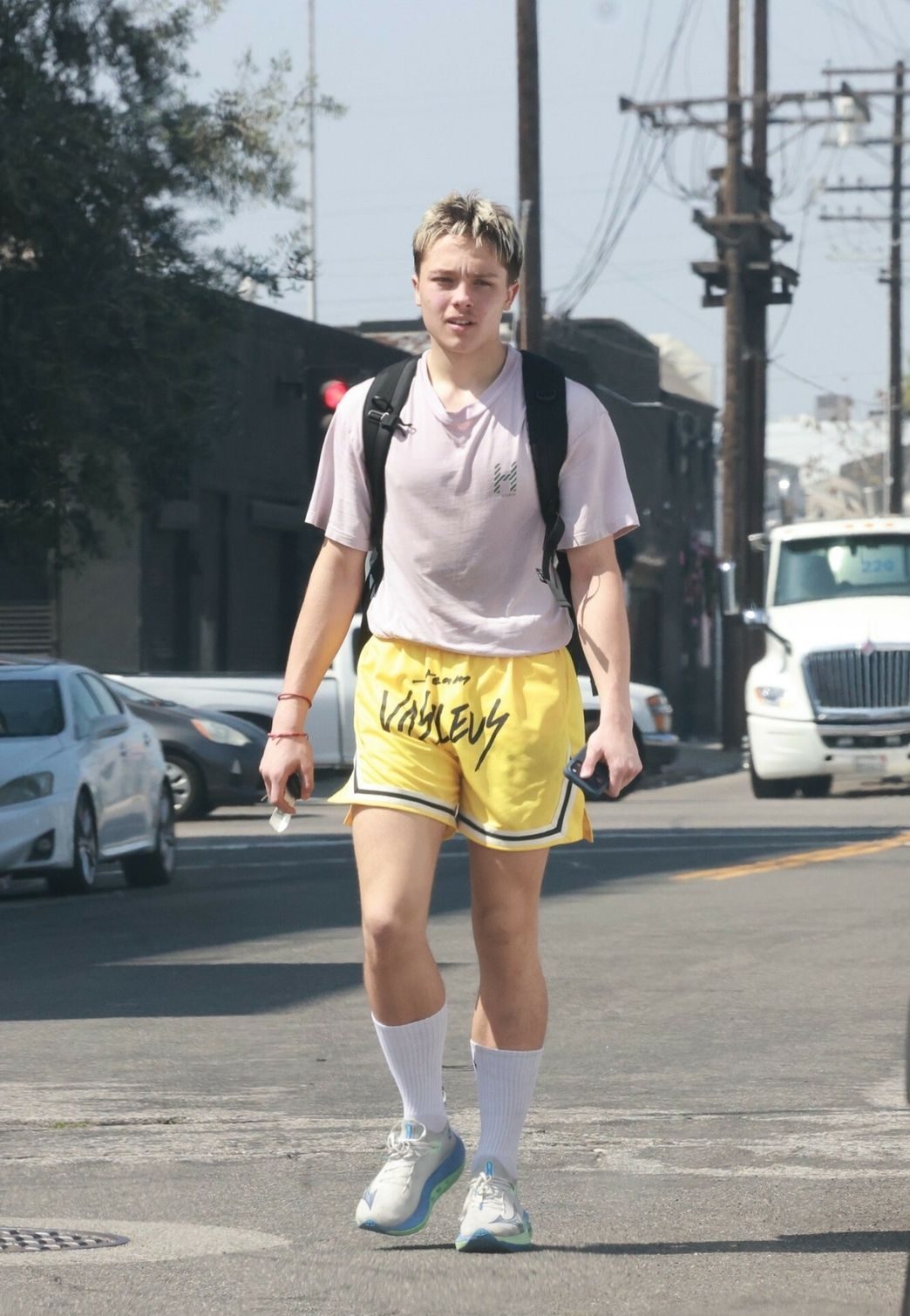 This latest sighting happened on the streets of Los Angeles, right after one of his training sessions. Dressed casually in a light T-shirt and bright yellow shorts, he carried a backpack over his shoulders and walked toward his car without drawing attention to himself. No posing, no reaction—just a teenager going about his day.