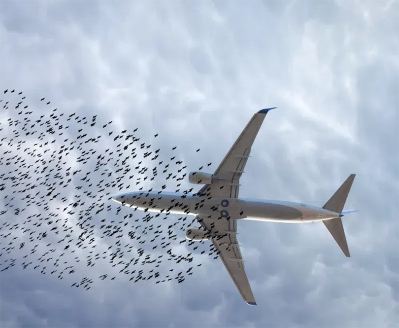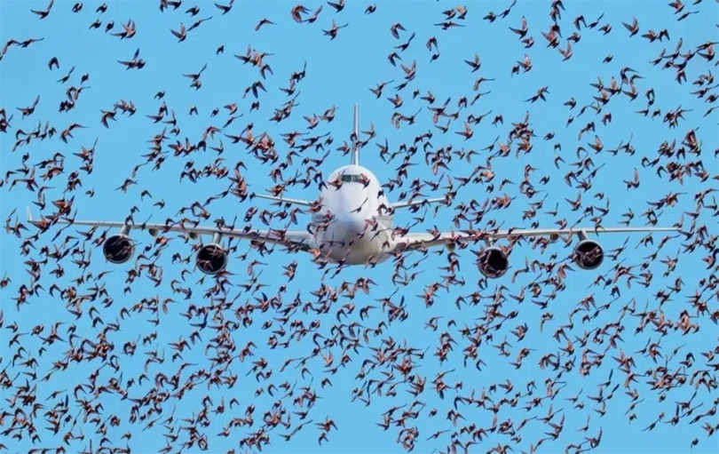 Then the cabin crew contacted him with alarming news. Outside the plane, a massive flock of birds had begun surrounding the aircraft.
