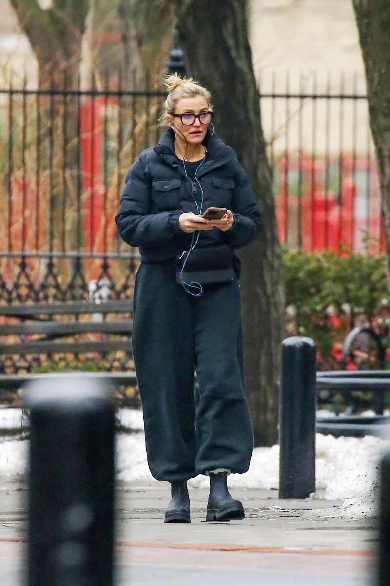 Images released by Daily Mail captured Diaz in an all-black ensemble — relaxed trousers, a plain black tee, a quilted jacket, and a crossbody bag worn with effortless ease. The overall look leaned toward comfort and functionality, with clean lines and zero excess.