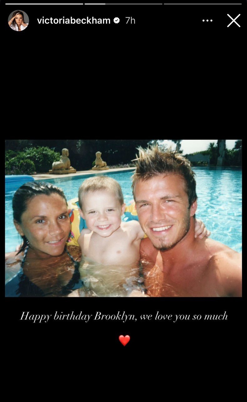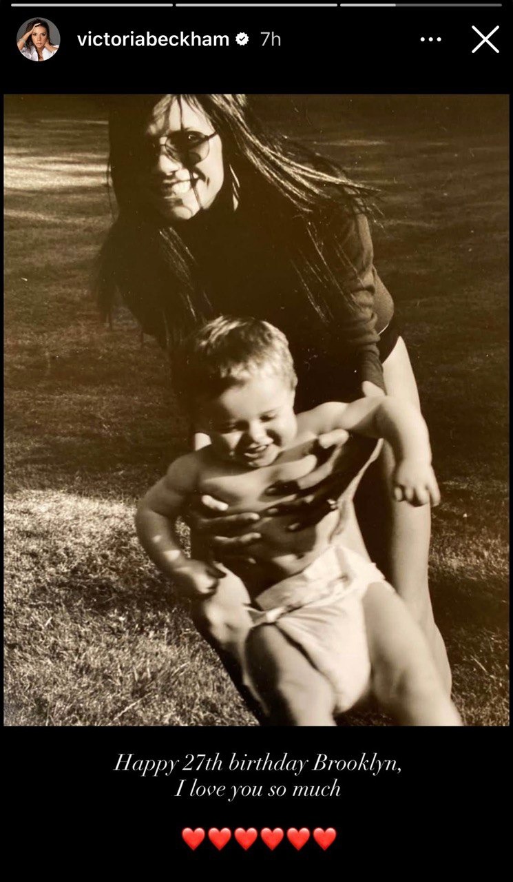 Soon after, Victoria Beckham added her own heartfelt message. She posted a touching throwback photo showing her cradling baby Brooklyn Beckham in her arms, accompanying the image with heart emojis and a simple note: “Happy birthday, Brooklyn. We love you so much.”