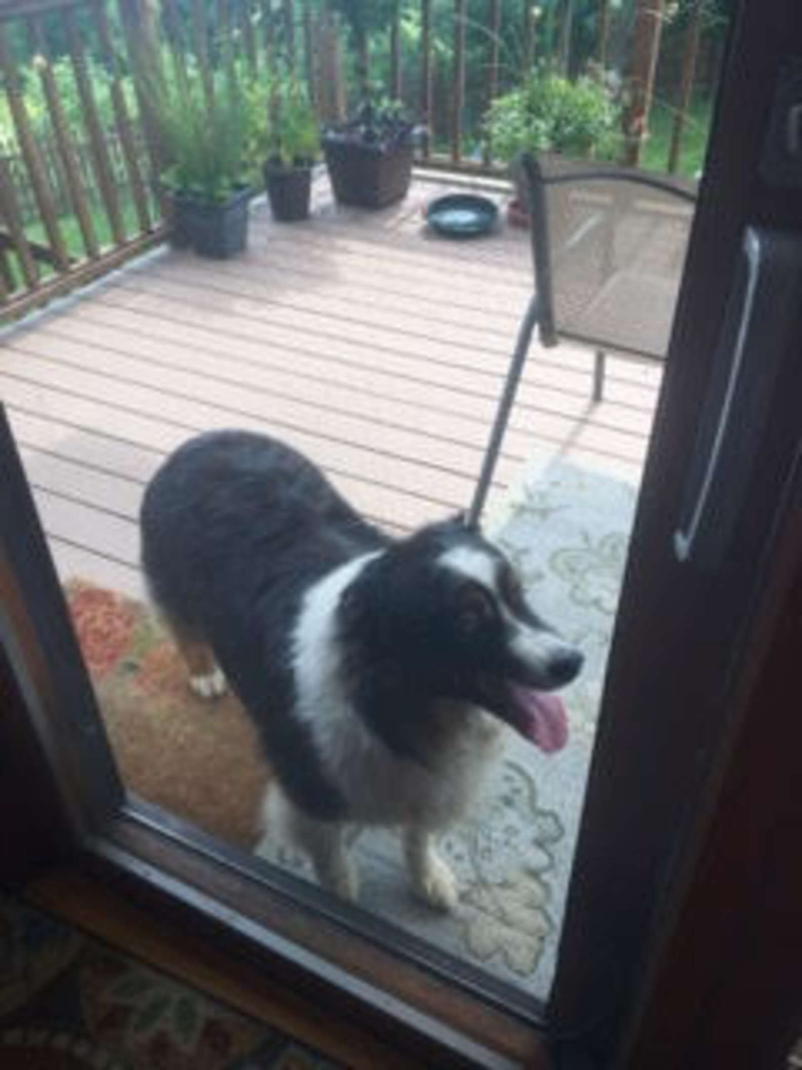 Typically, Termolen explained, when he pays a visit, he first stops by the front door and barks a few politely. “If no one answers the front door, he will either try to enter through an open garage or run around to the back deck through the backyard while barking at each door. Normally, I just let him in or let Tommy out.