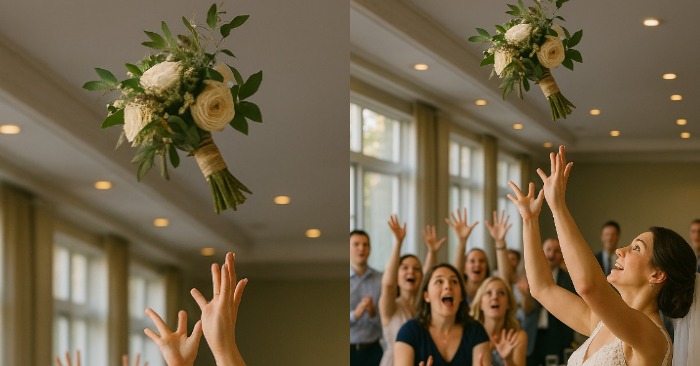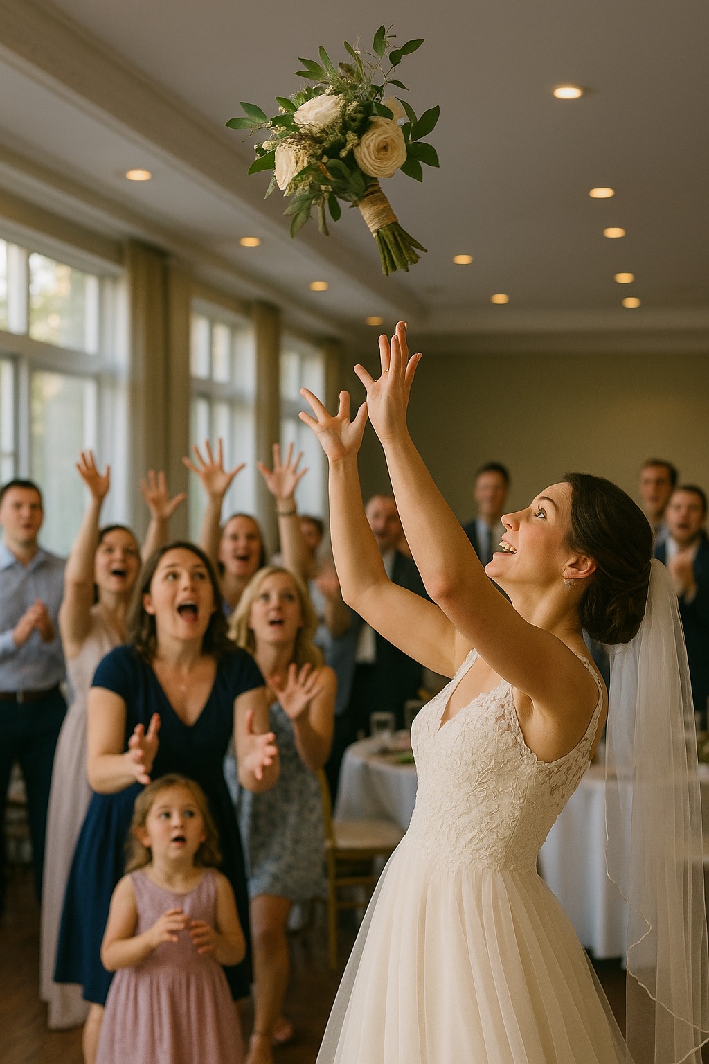 It was supposed to be the picture-perfect moment. The bride, glowing in her white gown, stood at the center of the dance floor, bouquet in hand, surrounded by cheering friends and family. Guests held up their phones, eager to capture the tradition that had been repeated at weddings for centuries: the bouquet toss. Whoever caught it, tradition said, would be the next to marry.