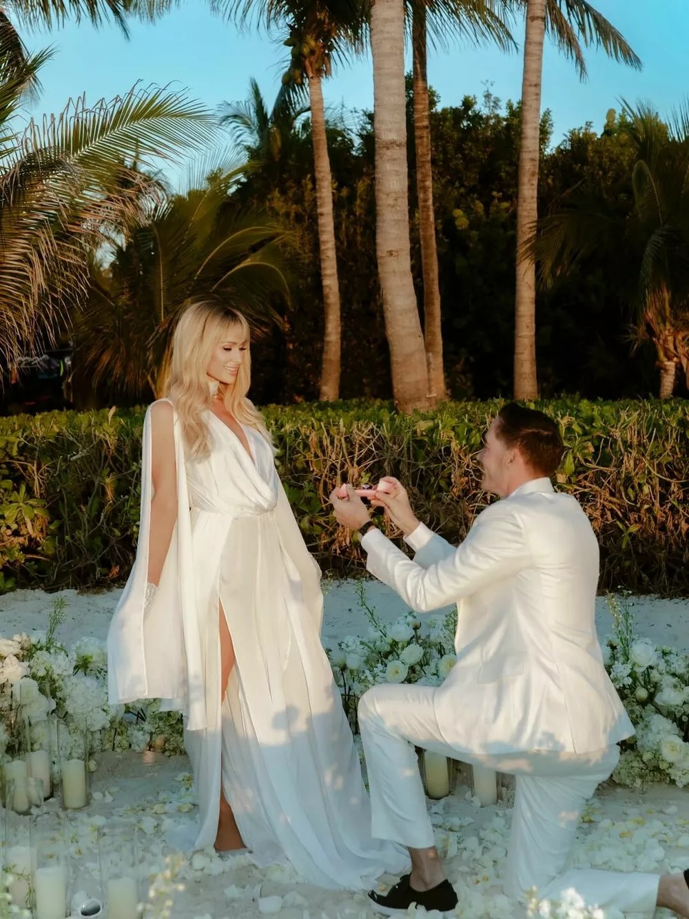 “Five years on… and he still gives me butterflies,” Paris Hilton wrote. She shared that her husband, Carter Reum, dropped to one knee all over again — and without hesitation, she said “yes” for a second time.