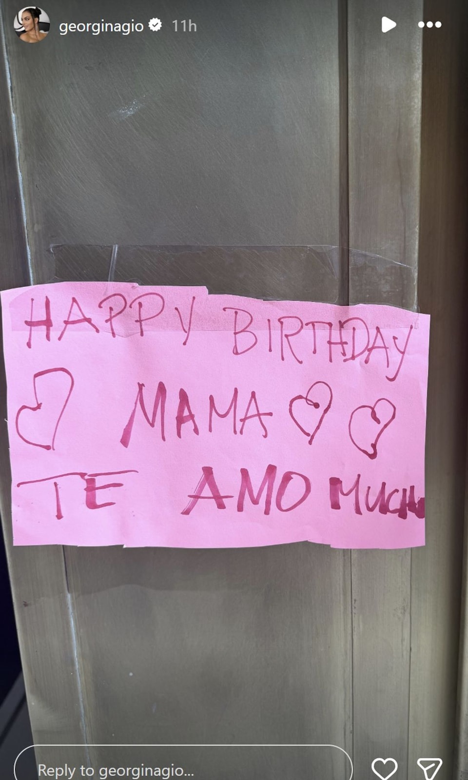 The couple has been together for more than ten years and are raising five children together, a fact that came through clearly in the quieter details of the day. Among the images Rodríguez shared was a handwritten birthday note from her children, scrawled in red ink. “Happy Birthday mom, I love you so much,” it read — a small moment that carried more weight than any grand gesture.