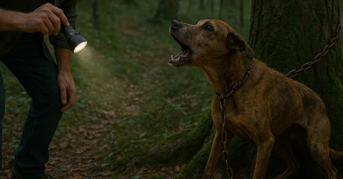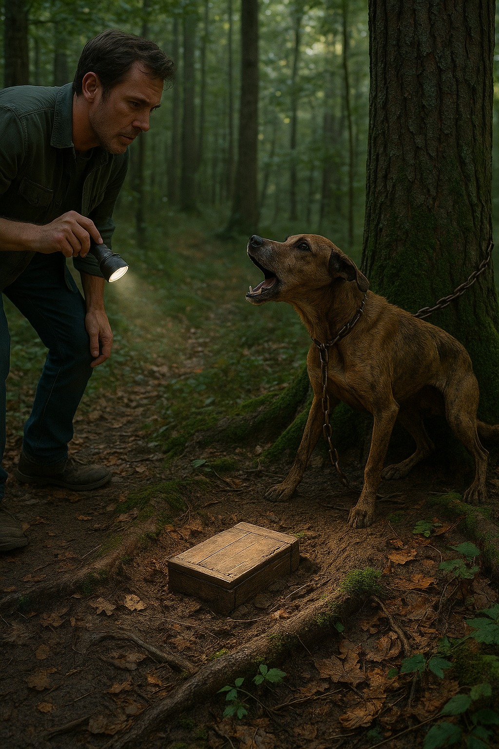 Michael crouched down. His flashlight beam revealed corners of wood peeking through the soil. He hesitated. His pulse quickened. Why would anyone bury something here — right where they had chained the dog?