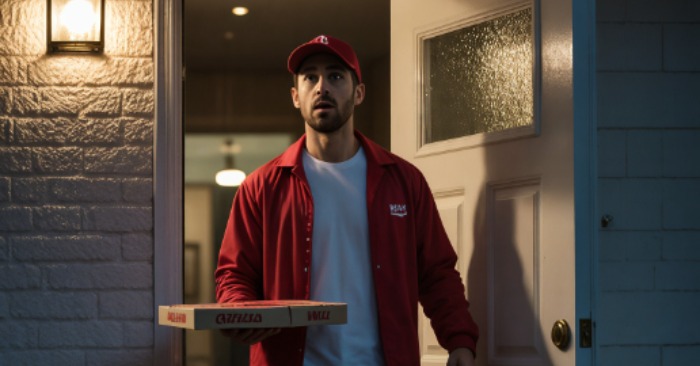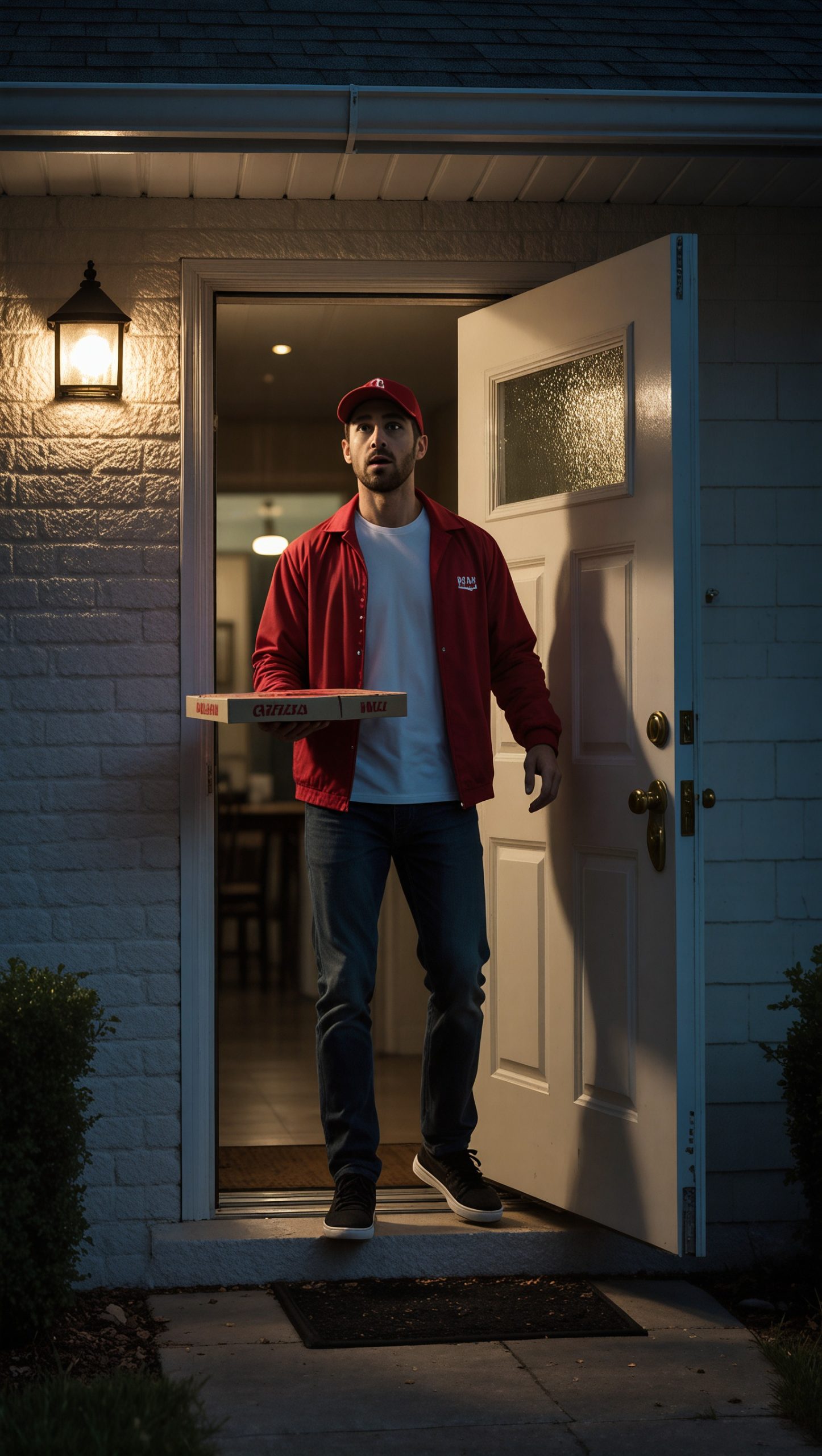 The order seemed normal enough: a large pepperoni, paid in cash. Ethan pulled up to the house, a quiet two-story at the end of a cul-de-sac. He grabbed the box, jogged to the door, and rang the bell. For a few seconds, nothing happened. Then he heard it.