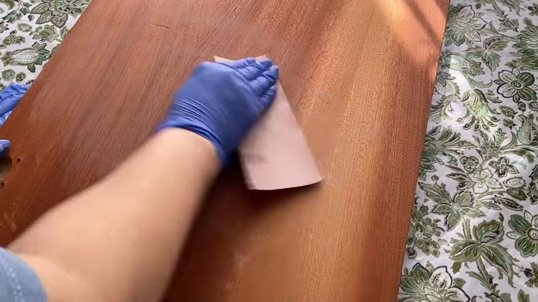 The process started with a full disassembly. The handles, doors, and shelves were removed to make the work easier and more precise. Then came the sanding—carefully done with different types of sandpaper to smooth the surface and prepare it for a fresh finish. Any imperfections were filled with wood filler, creating a clean base for the next steps.