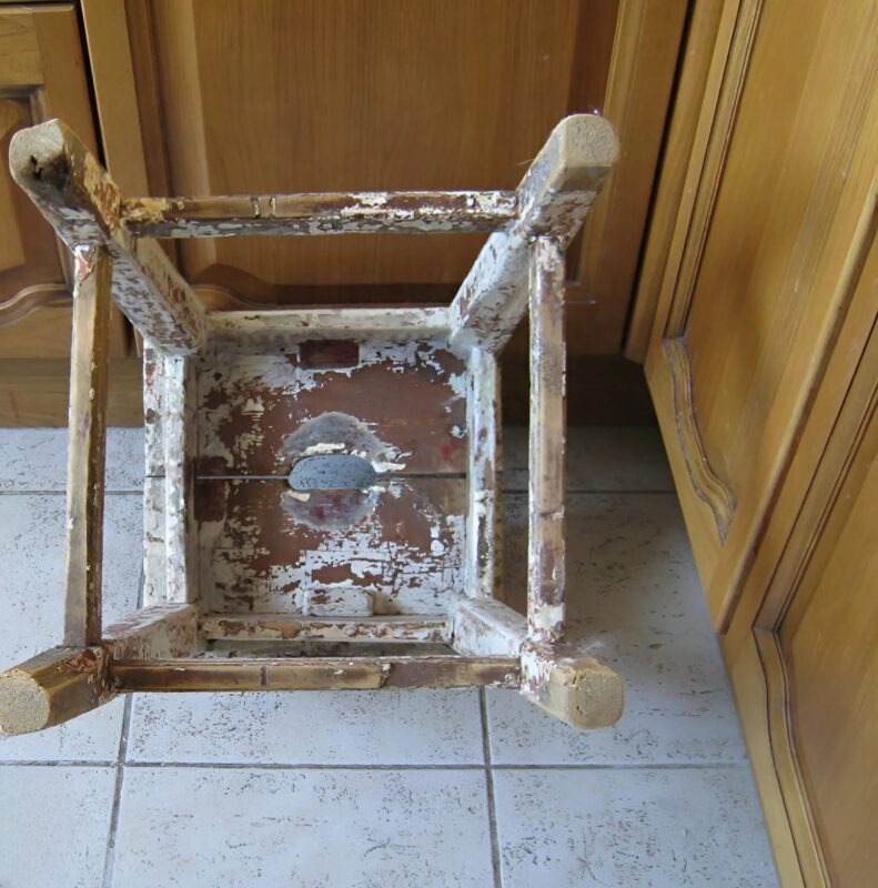 Over time, however, the chair began to fall apart. The paint was peeling, the legs had become wobbly, and a hole had even appeared in the seat. At first, it seemed like the only solution was to throw it away. But I simply couldn’t do it. Too many memories were connected to that chair.