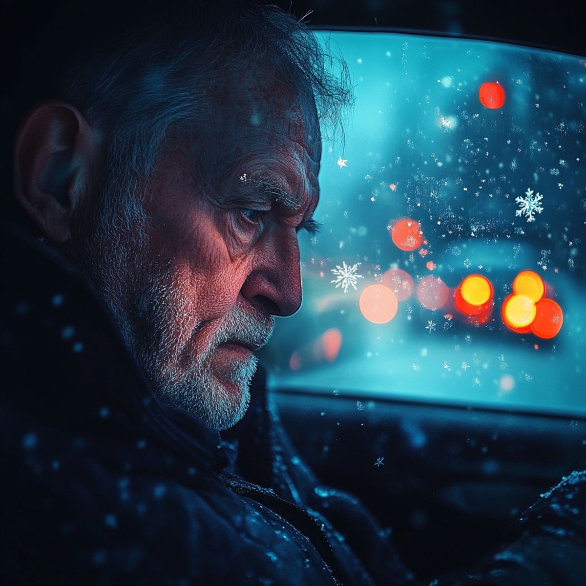 My headlights caught a lone figure moving along the shoulder of the road. An elderly man, hunched against the wind, pulling a dented suitcase that seemed far too heavy for him. His steps were slow, deliberate, as snow spun around him and clung to his threadbare coat. Something about him pulled at me—he looked uncannily like my grandfather, who’d been gone for years but never truly absent from my memory.