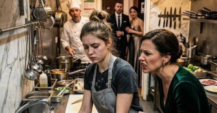 “She’s been downstairs,” I continued. “Washing your dishes. Cleaning up after you. Standing in a service kitchen like she doesn’t belong here.”