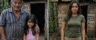 She was tiny. Elderly. Wrapped in a coat so worn it barely held together. Her shoulders curved forward as if years had pressed down on her spine.