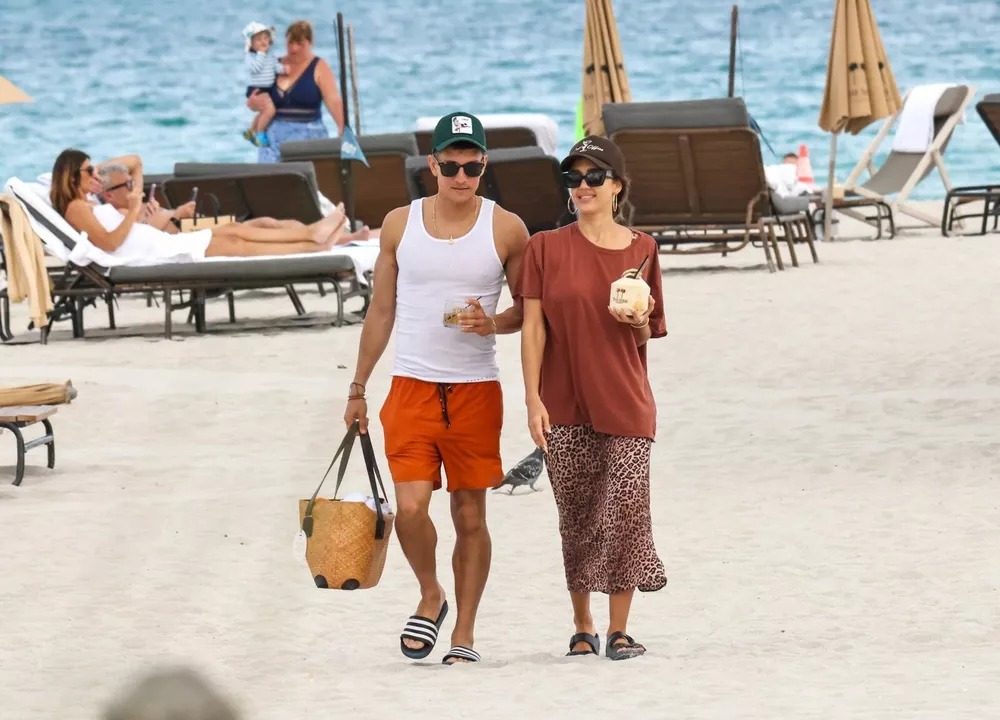 Dressed in a black-and-white bikini, Alba soaked up the sun and showed off her toned figure. But it wasn’t just the swimwear that caught attention. At one point, she and Ramirez were seen embracing on the sand, sharing a soft, affectionate moment in full view of other beachgoers.