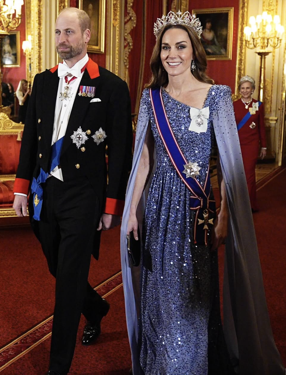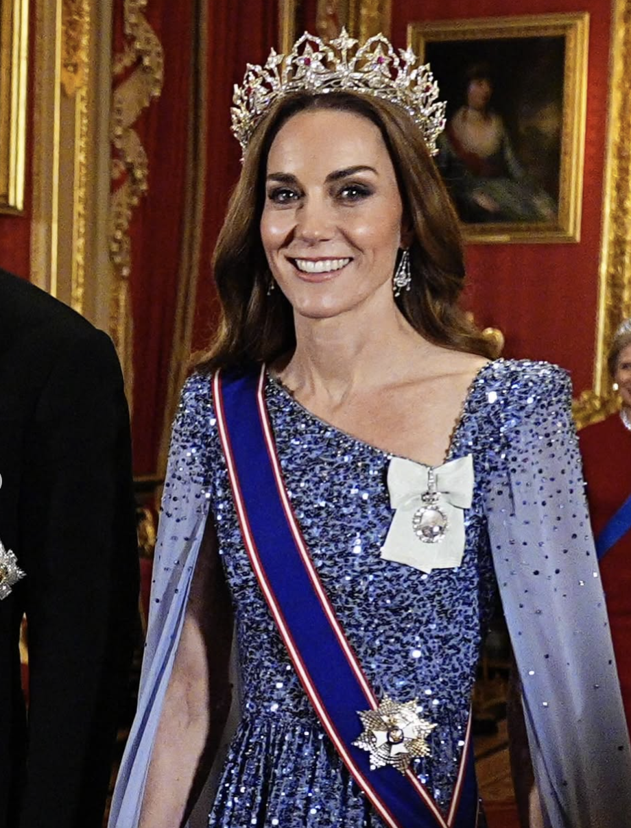Before the banquet at Windsor Castle, Kate and Prince William posed for a new official portrait, where the tiara made its long-awaited return. The occasion honored the state visit of Germany’s President Frank-Walter Steinmeier and his wife, Elke Büdenbender.