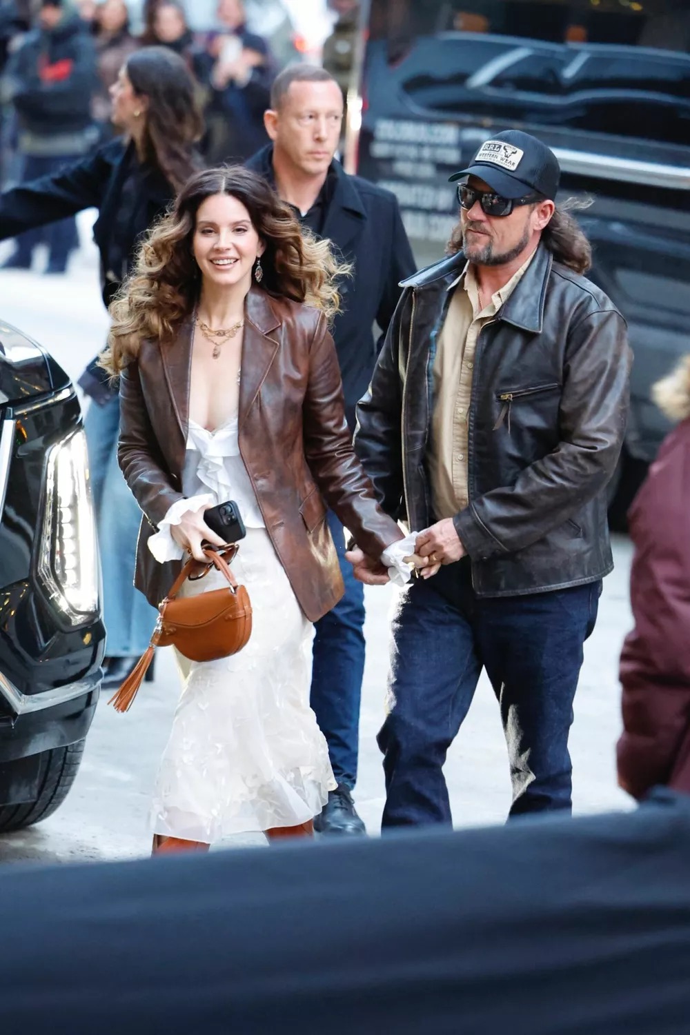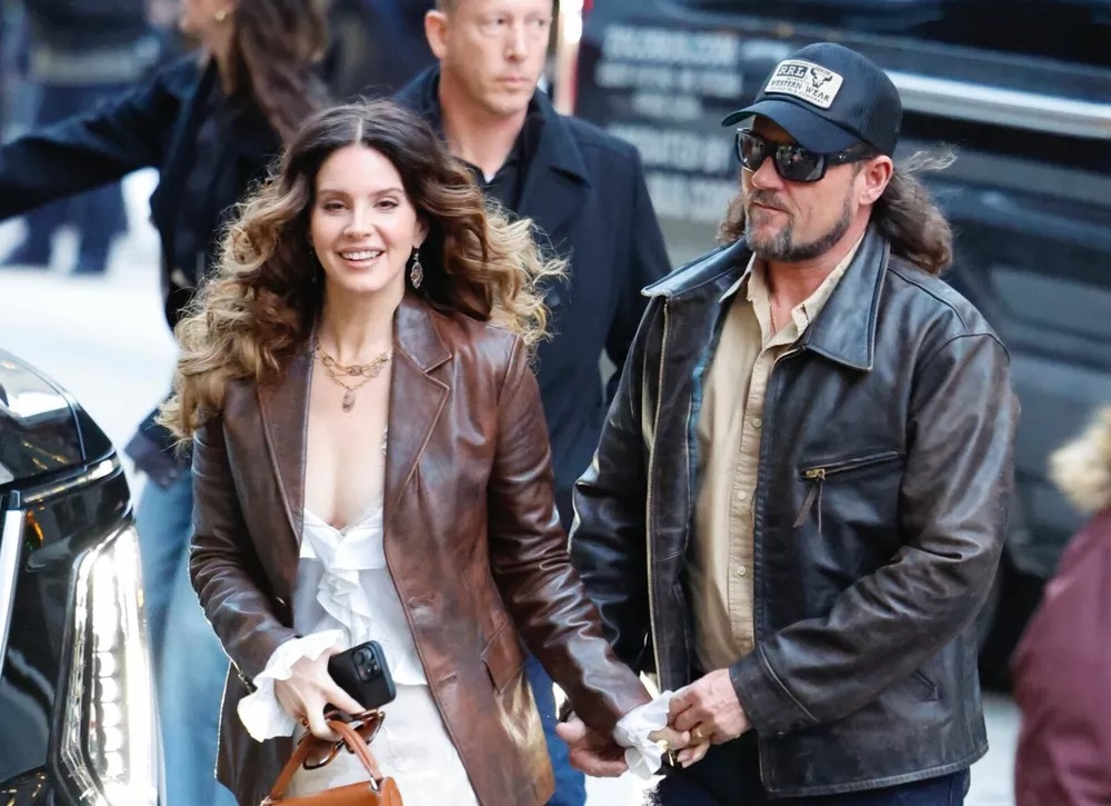 The couple’s outfits were carefully coordinated, echoing the timeless elegance that defines Ralph Lauren. Lana opted for a brown leather blazer layered over a flowing white long-sleeved dress that moved softly as she walked. But it wasn’t just the outfit that surprised fans — it was her hair. Known for her sleek, perfectly straight styles, the singer switched things up with voluminous, dramatic curls that added a new edge to her classic image.