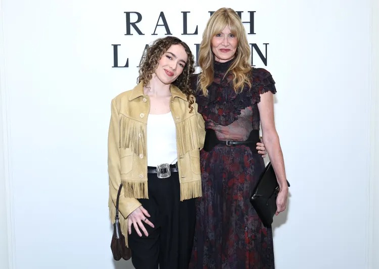 Dern has recently been appearing alongside her daughter, Jaya Harper, stepping into the public eye together. In September, the pair arrived as a duo at Ralph Lauren’s Spring 2026 show, leaning into matching Western-inspired styling. Jaya opted for a fringed leather jacket layered over a white T-shirt, finished with black trousers and a bold belt, while Dern went for a romantic sheer dress with floral detailing, a ruffled neckline, and a softly pleated skirt.