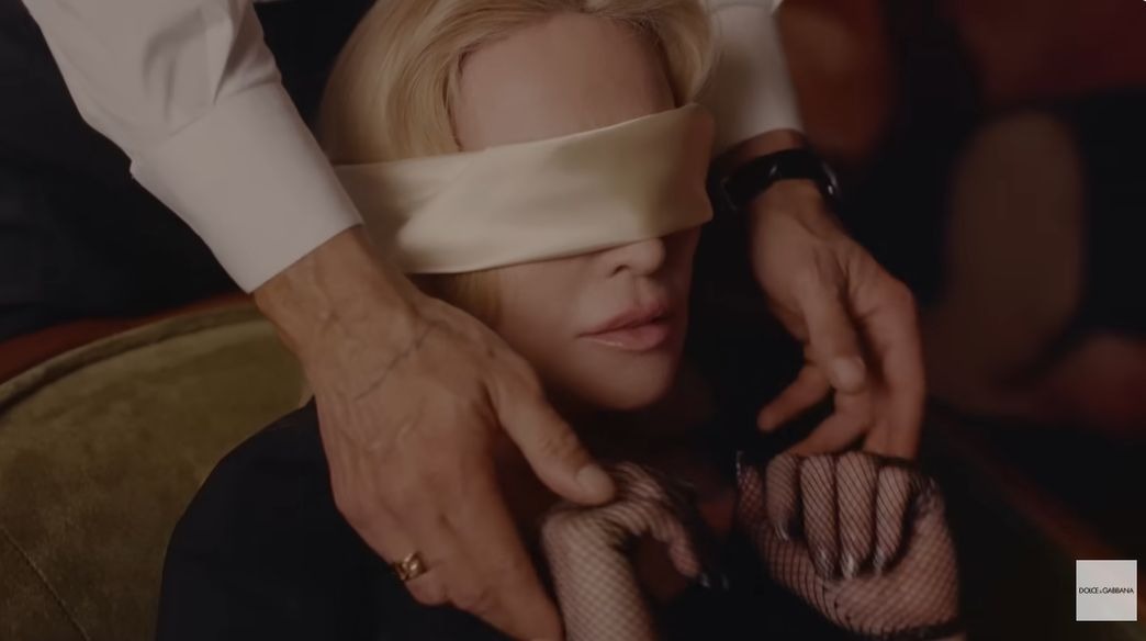 Visually, the campaign pushes boundaries. Madonna appears surrounded by young men, dressed in revealing lingerie and dramatic silhouettes. The scenes shift into a bedroom setting filled with symbolic imagery. Blindfolds, lace fabrics, and quick, charged cuts create a mood designed to tease rather than explain.