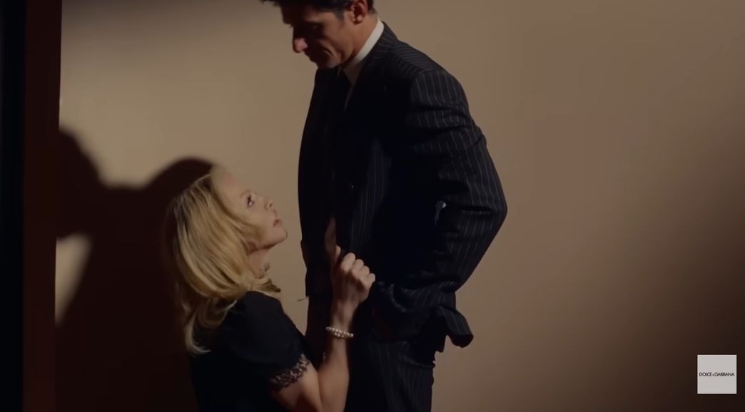 In the Dolce & Gabbana perfume commercial, Madonna draws on her long-standing friendship with the designers. The atmosphere is unmistakably Italian, sensual, theatrical, and unapologetically stylized. The soundtrack features her interpretation of “Pensiero Stupendo,” a classic Italian song originally performed by Patty Pravo. The lyrics, centered on a love triangle, mirror the tension unfolding on screen.
