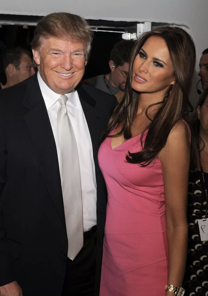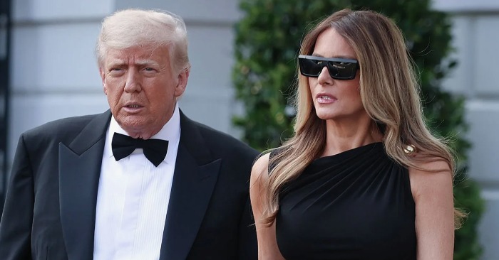 The sleeveless dress combined a structured white base with large, contrasting floral details that flowed down the silhouette, creating a striking yet elegant look. Paired with classic black stilettos and smooth, wavy hair, Melania’s appearance radiated modern, polished elegance. This choice was somewhat unexpected as the First Lady usually favors sleek, minimalist designs without much adornment.
