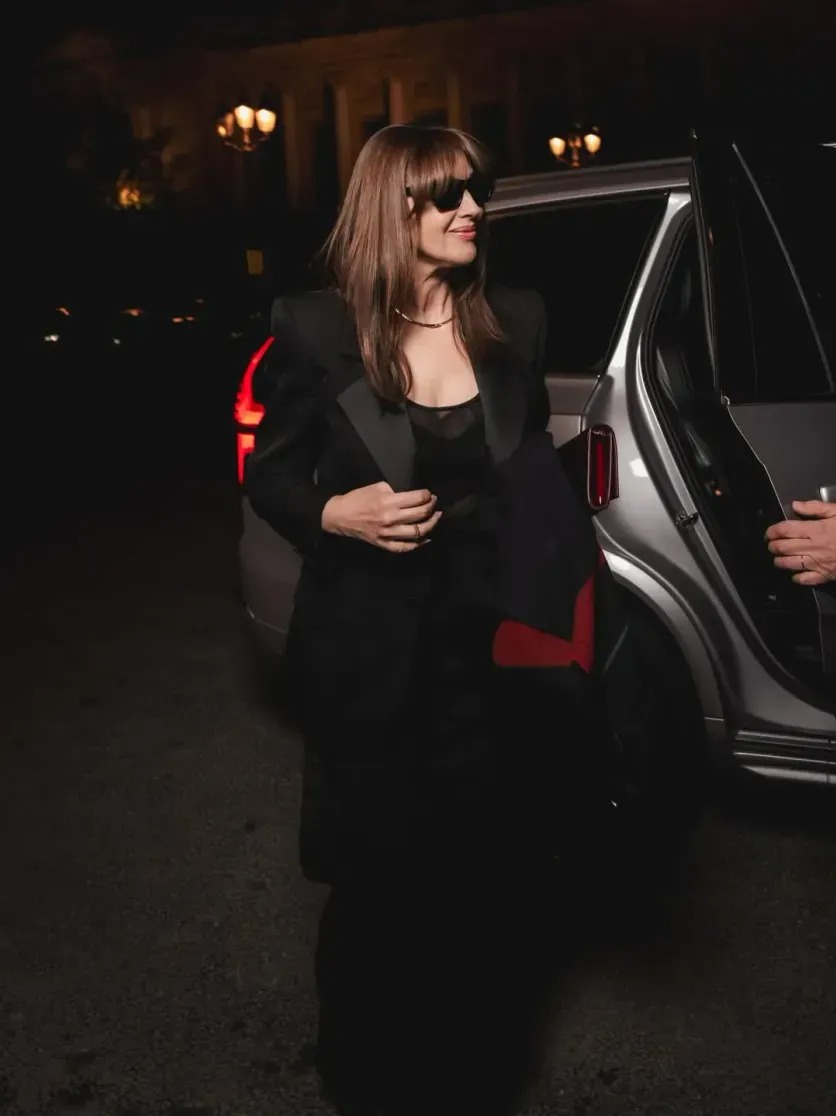 Facing the cameras, Bellucci chose a classic black trouser suit elevated by a semi-sheer blouse that subtly revealed her silhouette. The look balanced restraint and sensuality — tailored, minimalist, yet undeniably bold. It was a reminder of her signature style: understated, powerful, and unapologetically feminine.