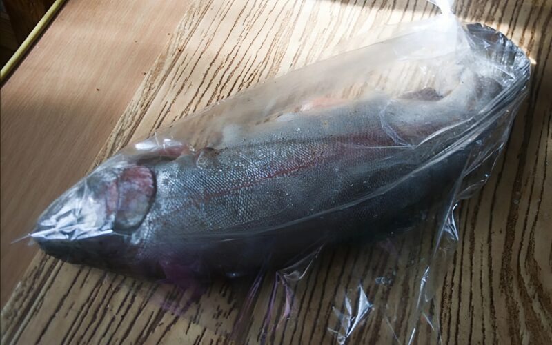 Place the fish inside a clear plastic bag (the kind you’d use for produce or storage). Make sure the bag is big enough so you can move your hands around easily while keeping the fish inside.