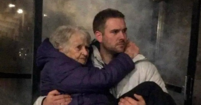 Two days after I carried my elderly neighbor down nine flights of stairs during a fire, a man appeared at my door like he’d been launched out of anger itself. He didn’t knock—he hammered. The whole frame shuddered.