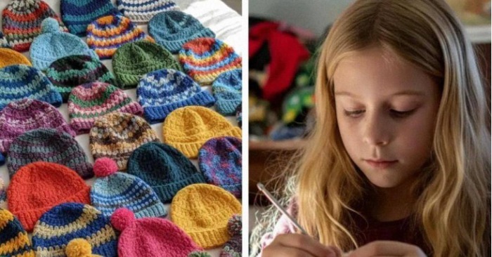 She taught herself from YouTube videos, using the tiny allowance she saved to buy her first yarn. Every afternoon became a ritual: homework, a snack, and then the quiet click-click of her hook. Each finished hat got folded carefully into a big bag beside her bed like it was treasure.
