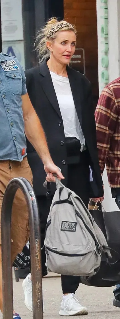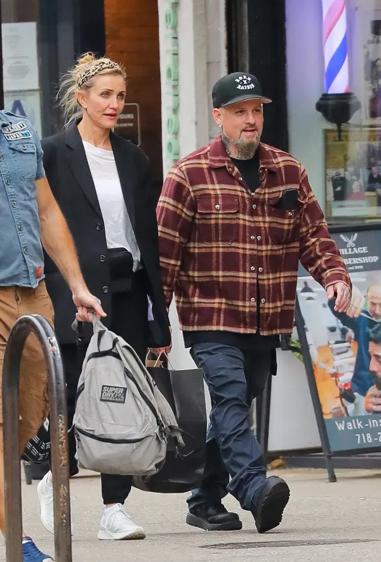 At 53, Diaz stepped out almost makeup-free, dressed casually, far from the polished image people are used to seeing. Beside her was Benji Madden, her husband of nearly a decade and member of the band Good Charlotte. The two appeared relaxed, simply enjoying a walk through the city without trying to turn it into a public moment.
