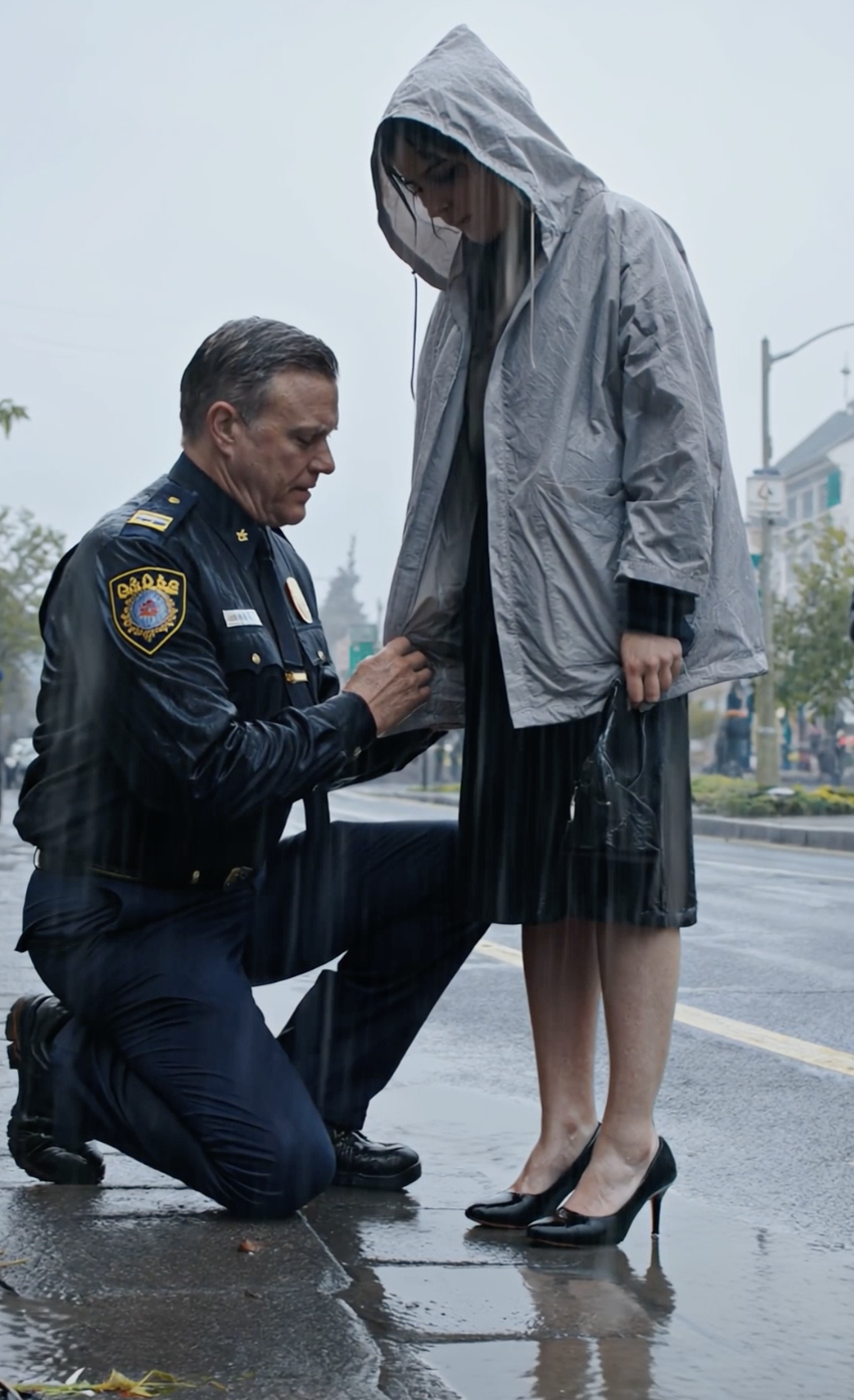 “Ma’am, are you all right?” he asked. No answer. She just stared at the ground. When he asked again, her voice finally cracked through the sound of rain: “I… I don’t know where else to go.”