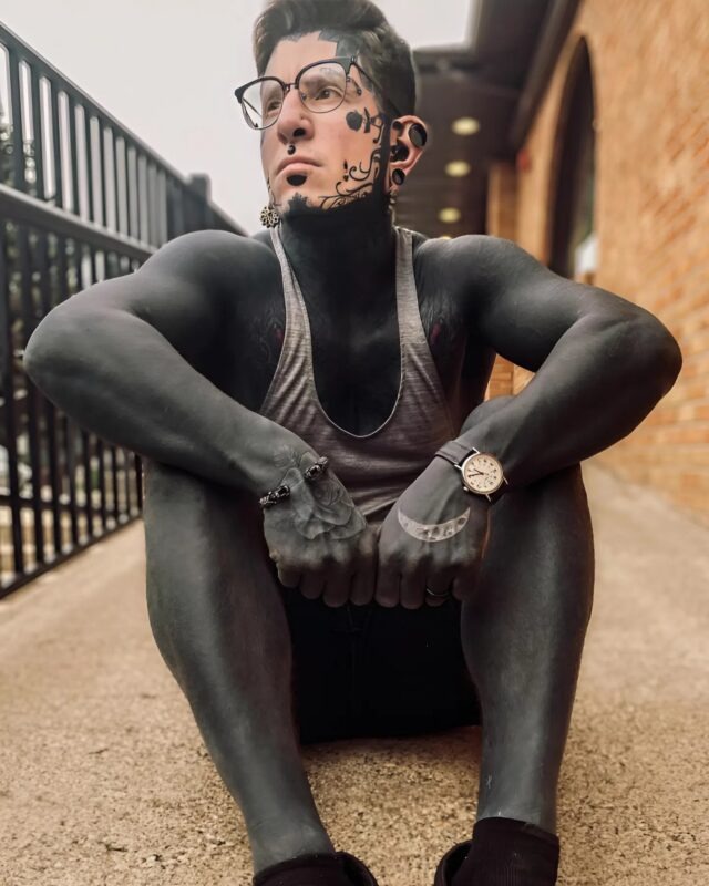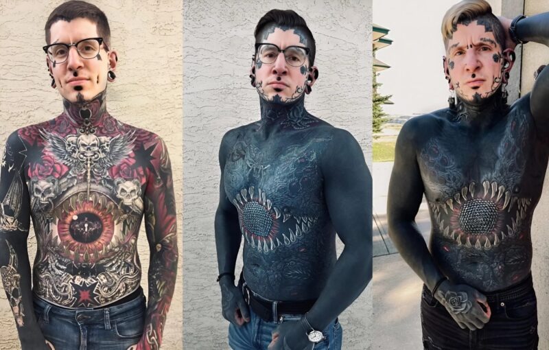 Tattoo culture has shifted over the years, and many now see it as a way of expressing identity or honoring personal milestones. At 36, he has spent over 2,200 hours under the needle, leaving almost his entire body blackened with ink — except for his face and palms.