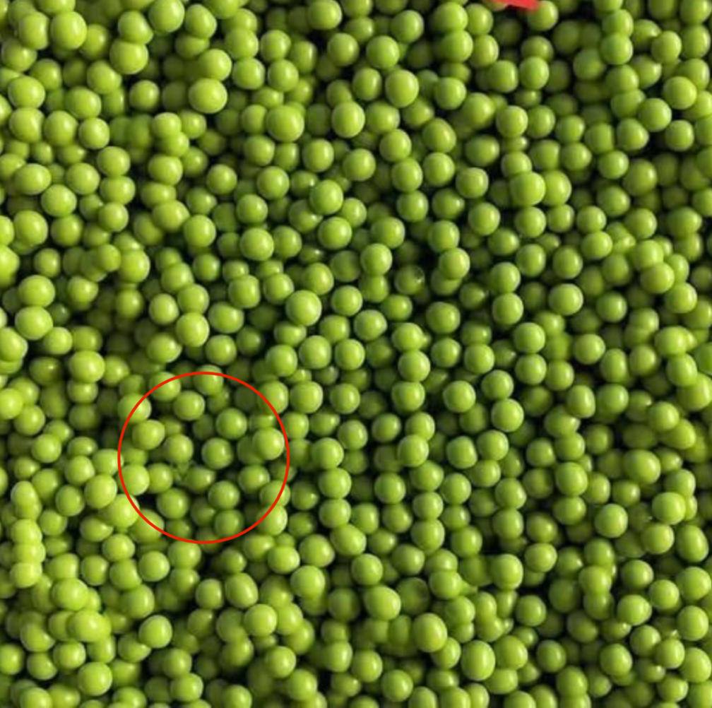 At first glance, this picture might look like nothing more than a pile of fresh green peas. But look a little closer — there’s something unusual hiding in plain sight.