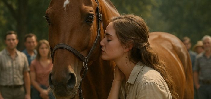 The crowd was restless. Dozens of people stood waiting in the afternoon sun, watching as a young woman tugged gently at the reins of a powerful chestnut horse.