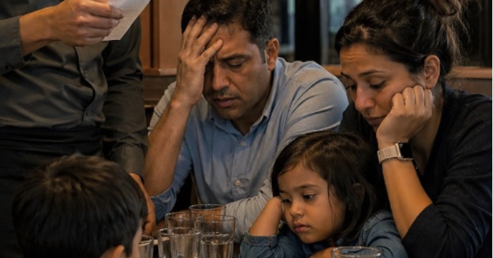 The father exhaled slowly, his shoulders dropping just a little. He looked at the note again, then folded it carefully, as if it mattered more than the meal itself.