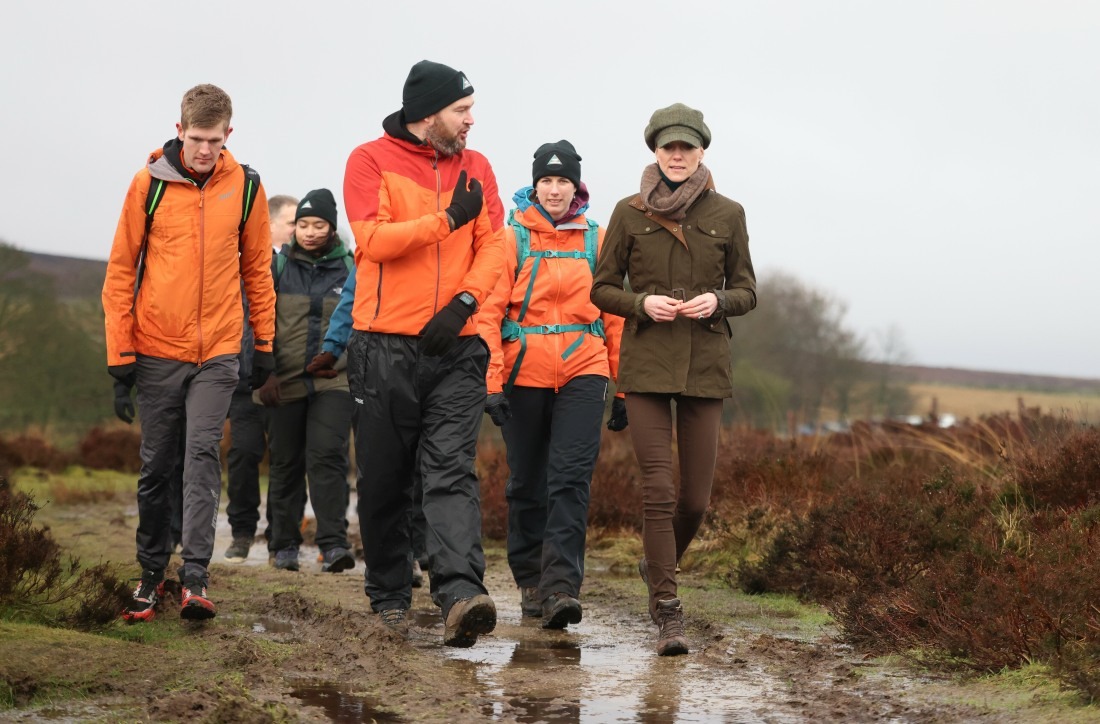 From there, she headed to Minds Over Mountains, a charity focused on supporting mental health through outdoor experiences. Dressed for movement, Kate joined a hike, embracing the organization’s belief that time outdoors can positively impact mental wellbeing. The palace photographer documented the outing, capturing a more relaxed, functional side of the princess as she walked and talked through the landscape.