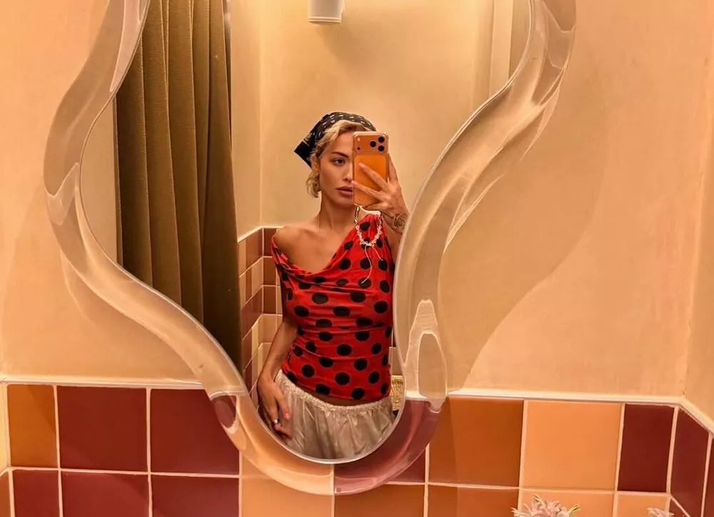In one of the backstage selfies, Rita posed wearing red sports pants, covering herself with one arm while preparing for the show. The image highlighted her toned figure and quickly caught the attention of her followers.