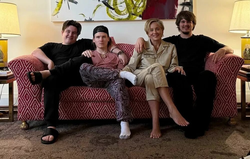 Stone became a mother through adoption, welcoming her eldest son Roan in 2000 during her marriage to journalist Phil Bronstein. After their divorce in 2004, she continued building her family on her own, later adopting Laird in 2005 and Quinn in 2006. The newly shared image captures Sharon seated on a couch, flanked by her noticeably grown boys — relaxed, close, and clearly bonded.