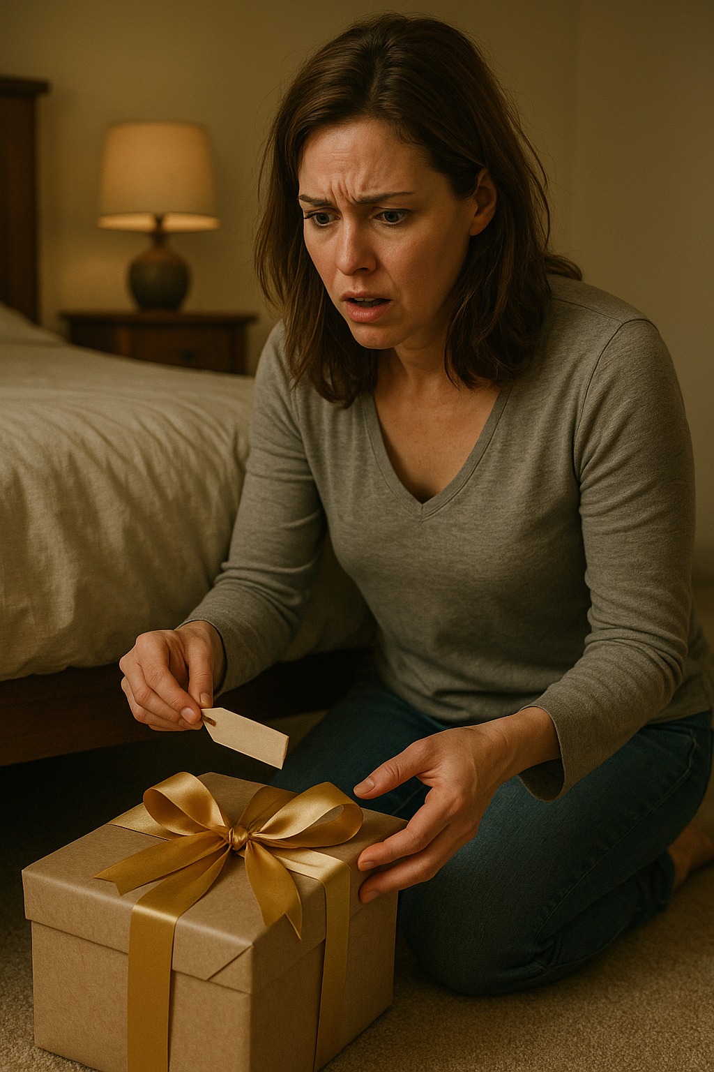 When Mark returned home later that evening, Anna tried to act normal. They ate dinner, talked about the bills, laughed about the neighbor’s new puppy. All the while, the gift sat hidden behind the bedframe, burning in her mind.