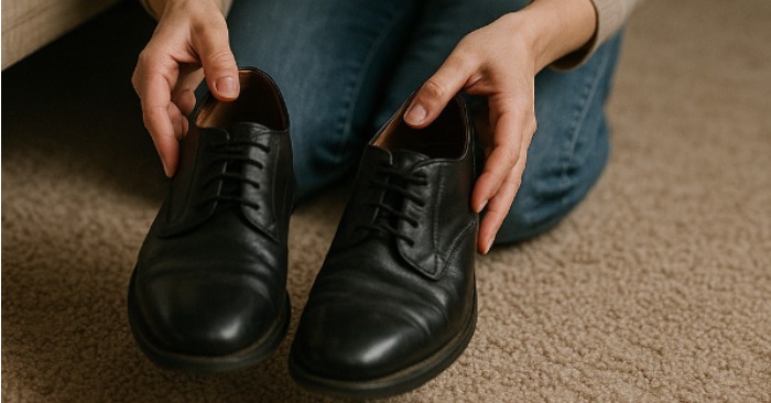 At first glance, they looked ordinary — black leather, slightly worn, the kind of shoes someone might wear to work. But as Julia pulled them out, her confusion turned to unease. They weren’t hers. And they weren’t her husband Mark’s either.