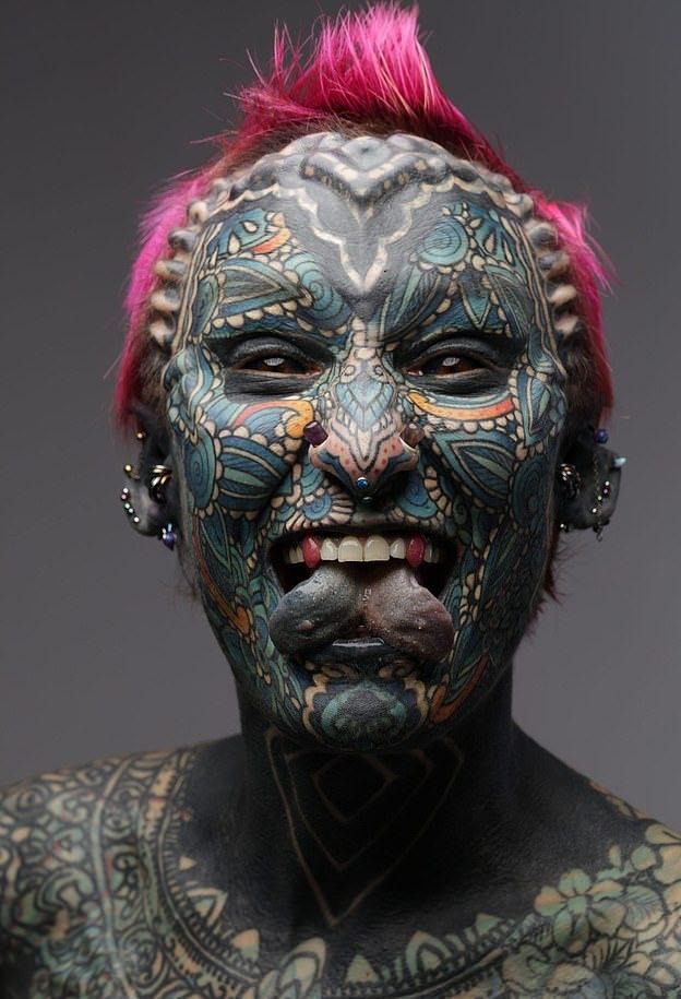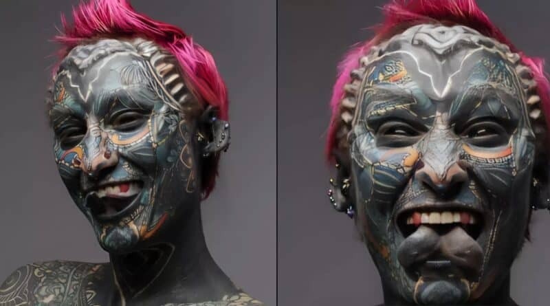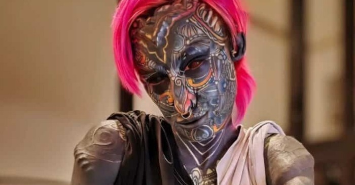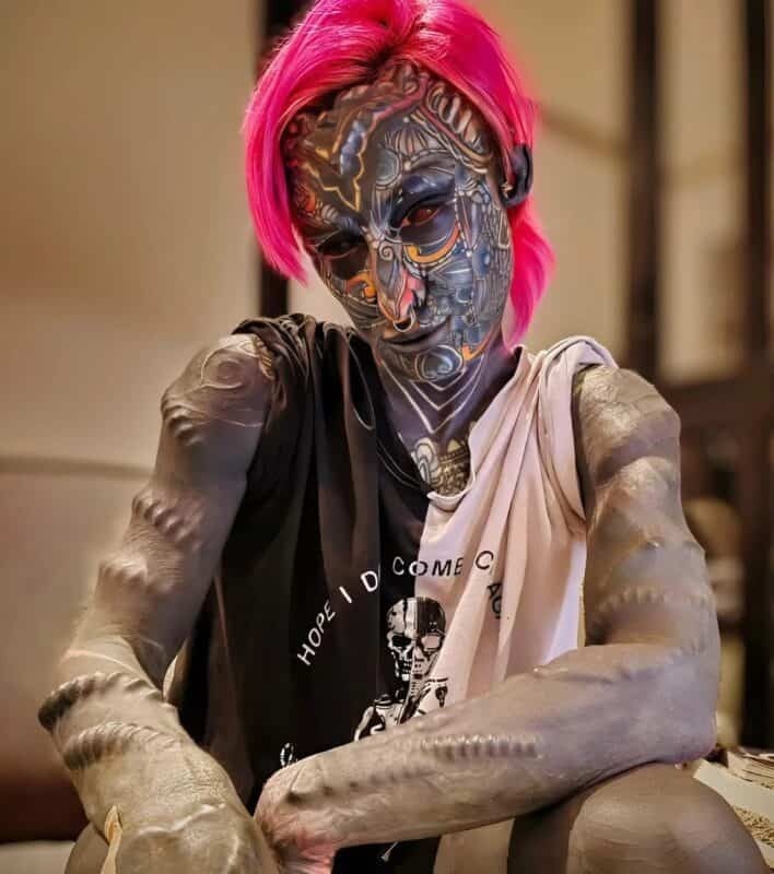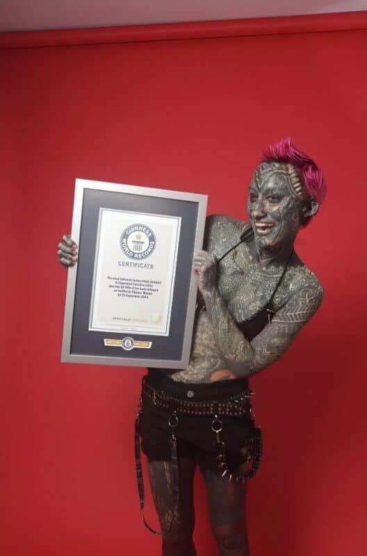 Because of her unwavering determination, she entered the Guinness World Records as the woman with the most tattooed and modified body in the world.