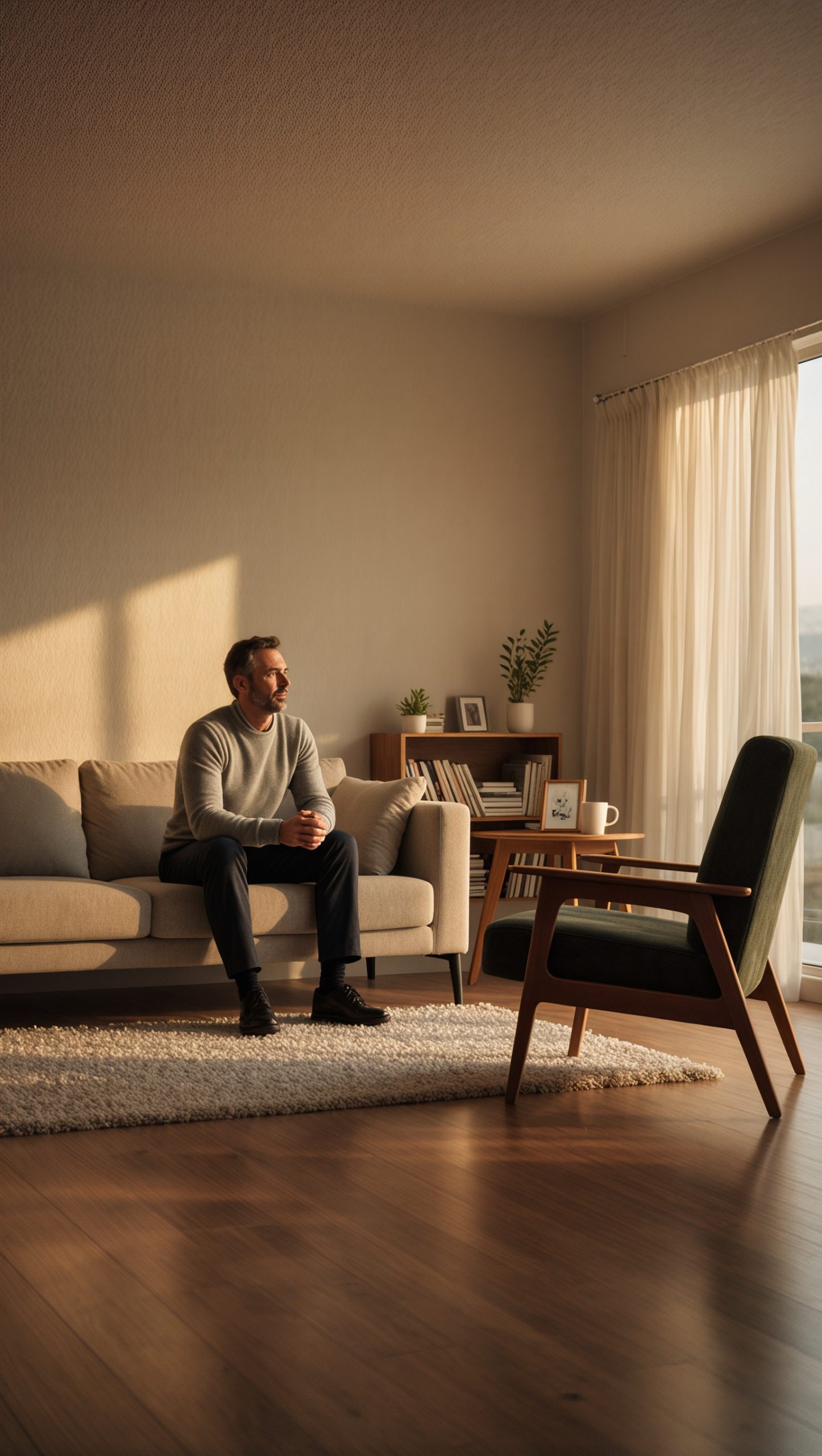Her husband Daniel was sitting on the couch, leaning forward slightly, his voice low and serious. At first, she thought he was on the phone. But there was no phone in his hand. Instead, his eyes were fixed on the old armchair across from him.
