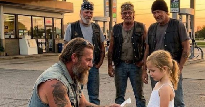 She quietly approached a biker during a gathering and gently placed a small folded note against his chest. When he later read it aloud, the weight of those few words overwhelmed nearly two hundred bikers, creating a moment none of them would ever forget.