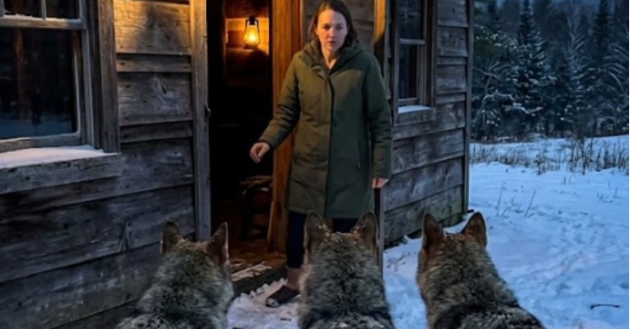 Then one night, the howling changed. It was closer. Lower. Drawn out in a way that made my chest tighten. I went to the window—and saw them. Four wolves stood just outside the door. They weren’t prowling or baring their teeth. They simply stood there, staring straight at the light inside.