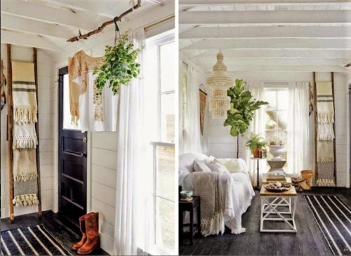 Since there wasn’t enough room for a separate entryway, it was cleverly integrated into the same space. Instead of a traditional wardrobe, the owner used a tree branch as a hanger—an unexpected detail that added character and originality.