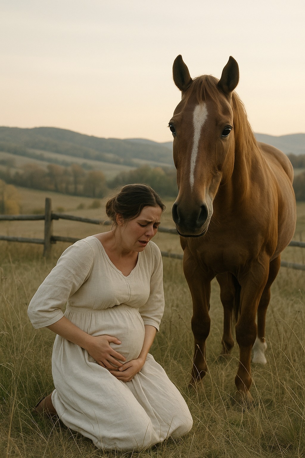 When the ambulance arrived, the rescuers were shocked: a large horse was lying next to a pregnant woman, not letting anyone approach until Emily herself whispered: ‘It’s okay, girl… They’re family.’
