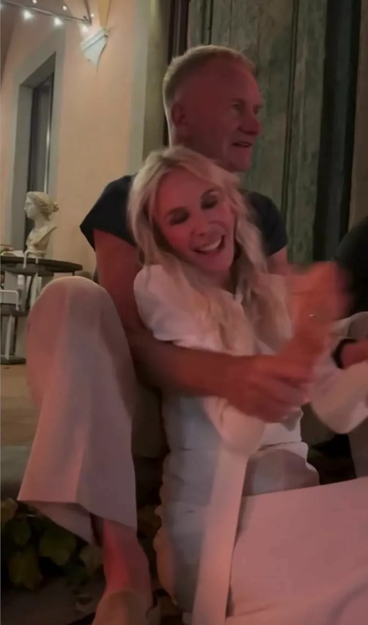 The touching compilation was set to Ellie Goulding’s dramatic ballad “Love Me Like You Do,” and it captured the couple in some of their most tender moments. There were behind-the-scenes glimpses from Sting’s tours, quiet travel snapshots, and relaxed evenings at home — the kind of everyday intimacy rarely seen from celebrity couples.