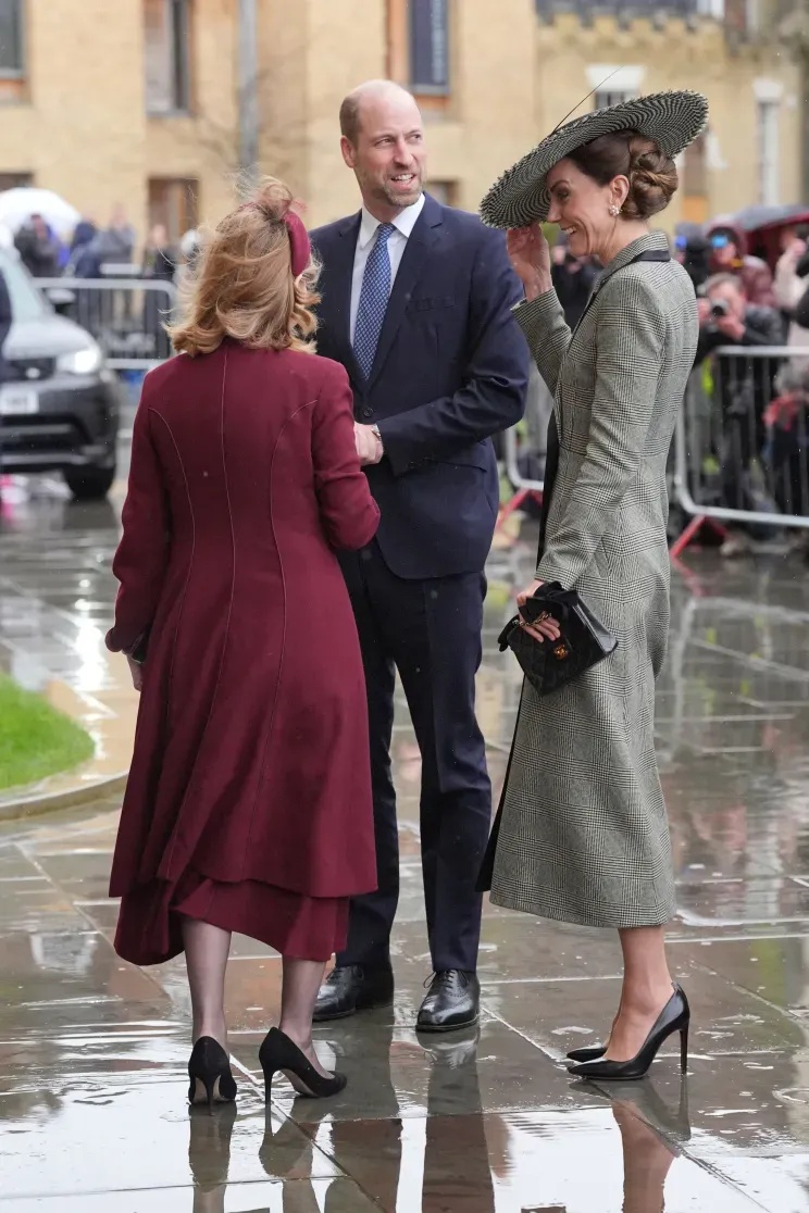 Kate wore a wide-brimmed piece by Juliette Millinery that almost completely covered her face. As strong winds swept through the area, she was repeatedly seen holding onto it, trying to keep it in place—creating a moment that quickly caught attention.