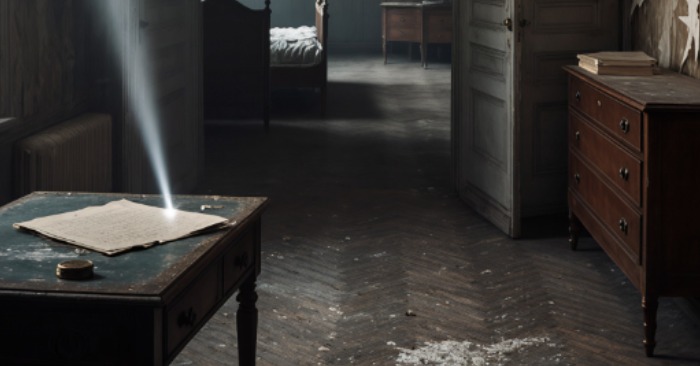 Armed with nothing but a flashlight, she crossed the field, her heart hammering with each step. The closer she got, the quieter the world seemed. Even the crickets stopped chirping as she pushed open the rusted gate and climbed the creaking porch steps.