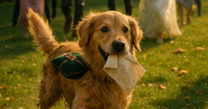 The couple’s beloved golden retriever, Max, had been chosen as the ring bearer — a charming touch meant to add a little humor and warmth to the occasion. He trotted proudly down the aisle with a velvet pillow strapped to his back, the rings tied neatly in place. Guests chuckled, cameras clicked, and for a moment, it felt like nothing could go wrong. That moment didn’t last.