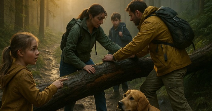 Thankfully, no one was hurt — but the realization sank in: their planned hike was now impossible. The family debated their next move. Should they attempt to climb over the tree, or turn back and find another trail? Tension rippled through the group.